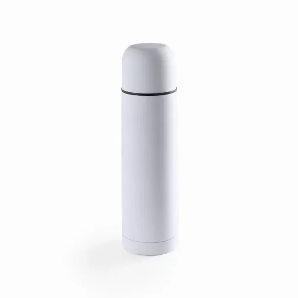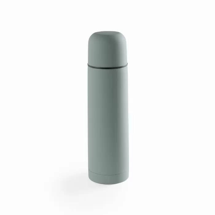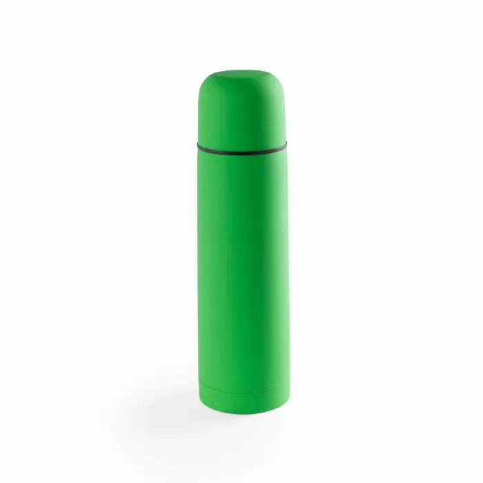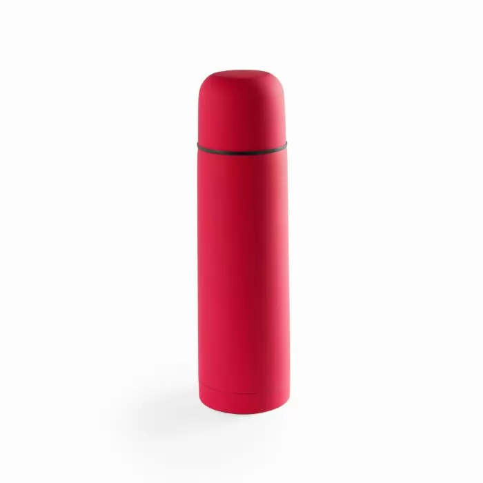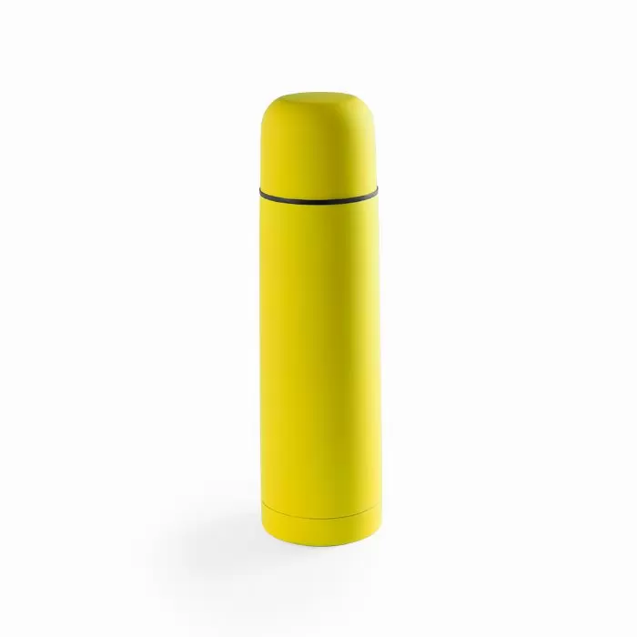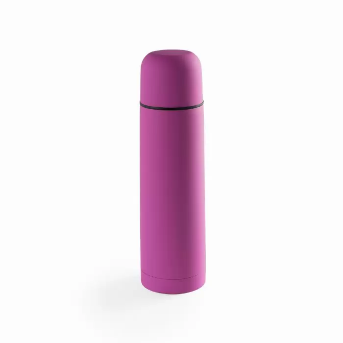 Garrafa térmica de aço inoxidável com capacidade de 500ml em design brilhante e de cor única. Com dispensador de segurança e tampa de rosca convertível em copo. Apresentado em caixa individual.